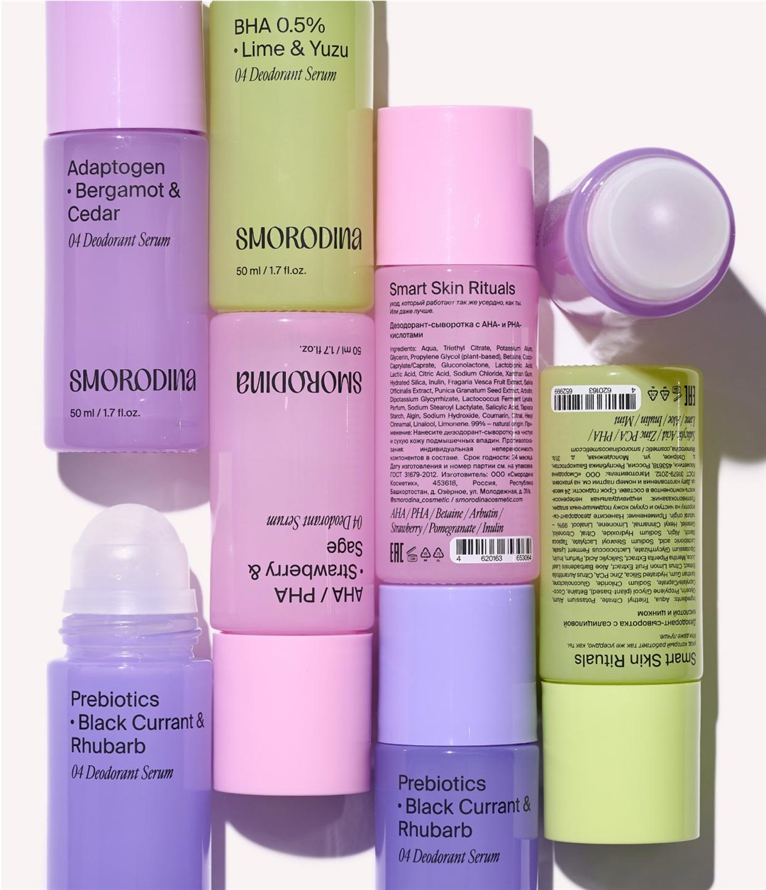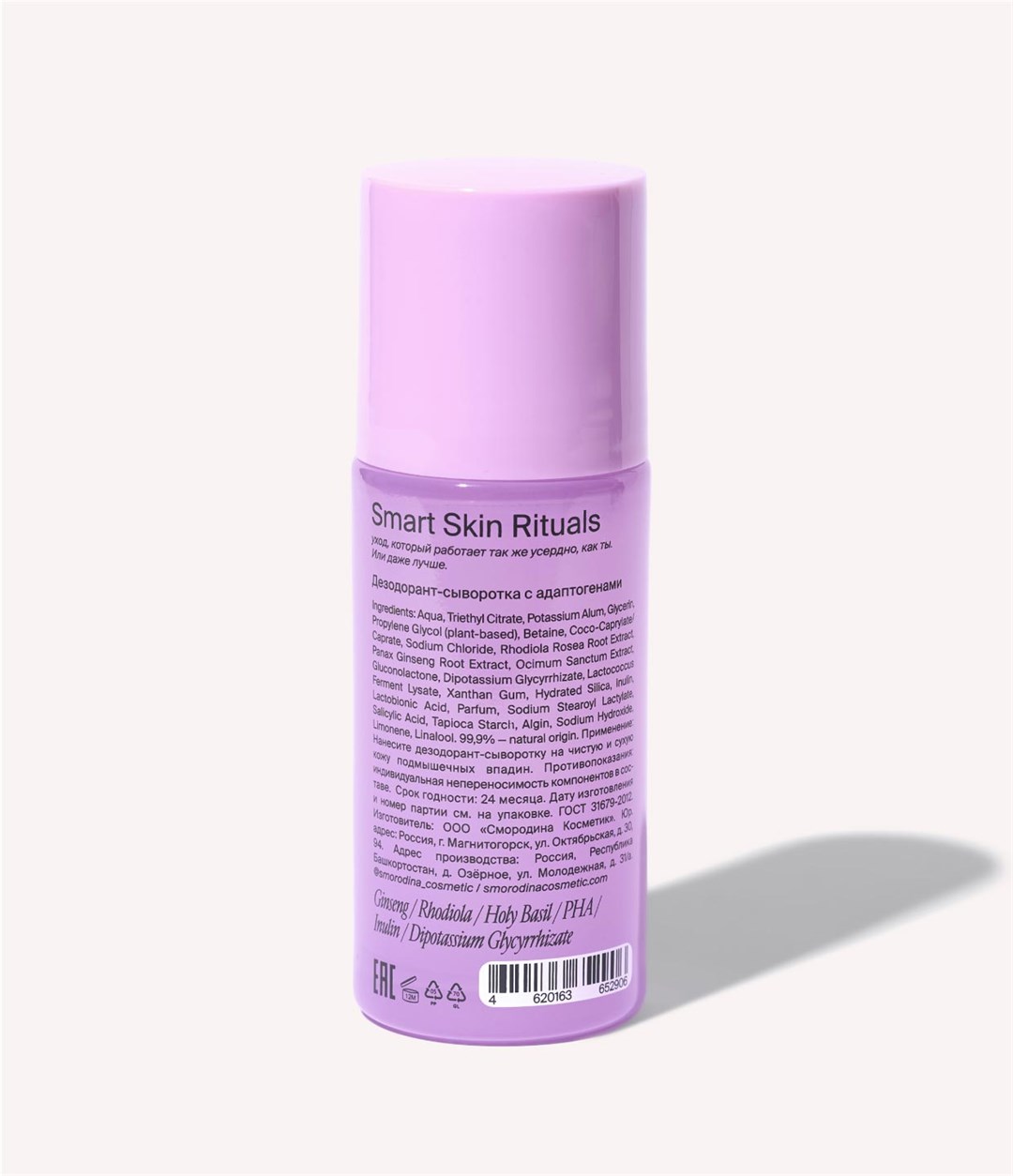 СОСТАВ/INCI: Aqua (вода), Triethyl Citrate (триэтилцитрат), Potassium Alum (алюмокалиевые квасцы), Glycerin (глицерин), Propylene Glycol (plant-based) (растительный пропиленгликоль), Betaine (бетаин), Coco-Caprylate/ Caprate (натуральный эмолент), Sodium Chloride (хлорид натрия), Rhodiola Rosea Root Extract (экстракт корня родиолы розовой), Panax Ginseng Root Extract (экстракт корня женьшеня), Ocimum Sanctum Extract (экстракт базилика священного), Gluconolactone (полигидроксикислота (PHA), Dipotassium Glycyrrhizate (дикалия глицирризинат), Lactococcus Ferment Lysate (лизат ферментов лактококков), Xanthan Gum (ксантановая камедь), Hydrated Silica (гидратированный диоксид кремния), Inulin (инулин), Lactobionic Acid (лактобионовая кислота), Parfum (натуральная парфюмерная композиция), Sodium Stearoyl Lactylate (растительный эмульгатор), Salicylic Acid (салициловая кислота), Tapioca Starch (загуститель), Algin (загуститель), Sodium Hydroxide (регулятор кислотности), Limonene, Linalool (компоненты эфирных масел).