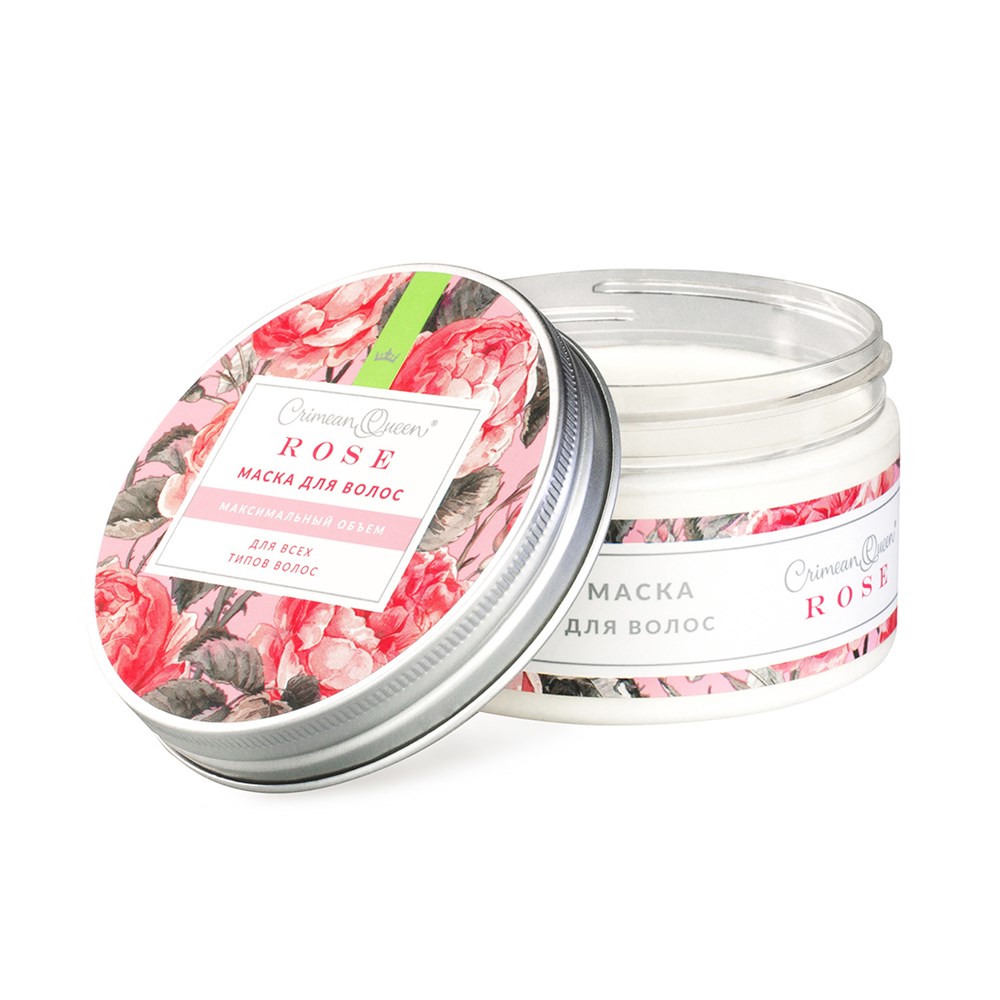 Маска с экстрактом розы и протеинами шелка придает объем и блеск волосам, питает их по всей длине.