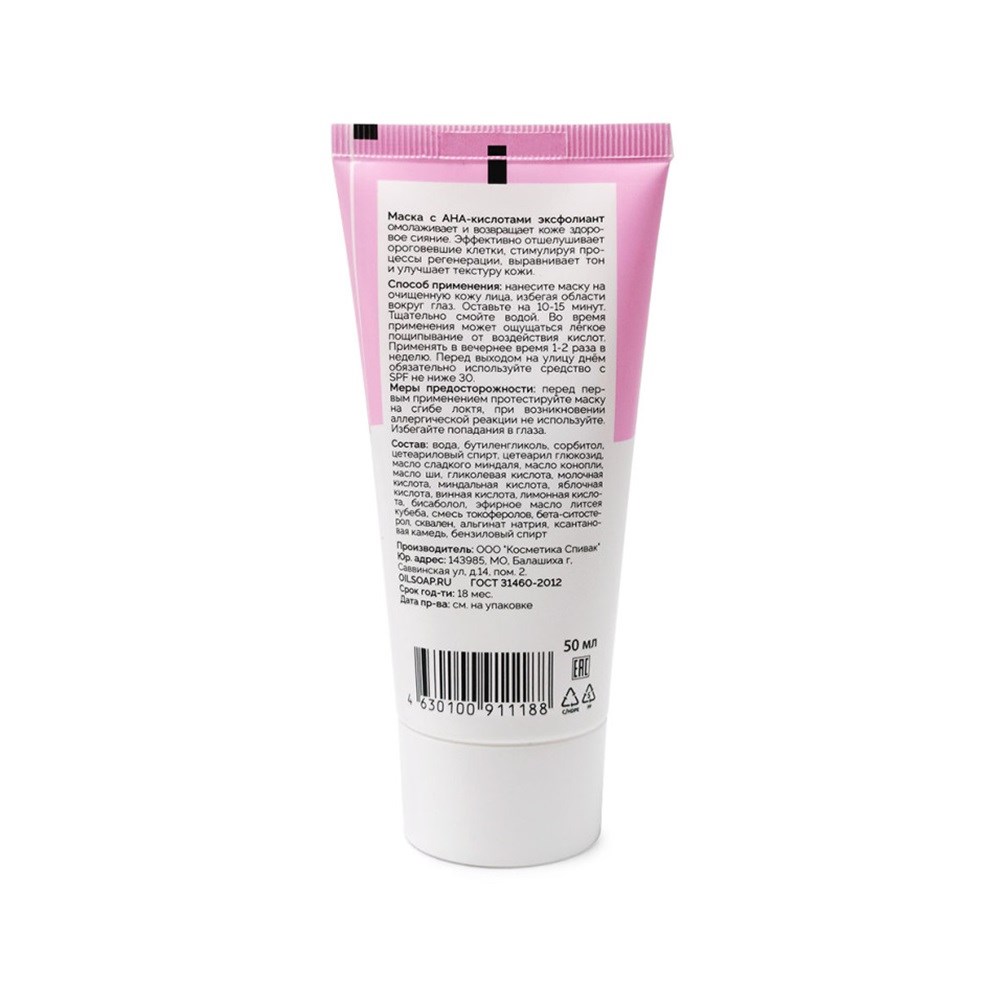 Маска-эксфолиант с AHA-кислотами эффективно обновляет и отшелушивает кожу. Очищает и визуально уменьшает поры, выравнивает рельеф и тон кожи. Запускает процесс омоложения, улучшает выработку собственного коллагена и эластина, заметно повышает упругость и тонус кожи.