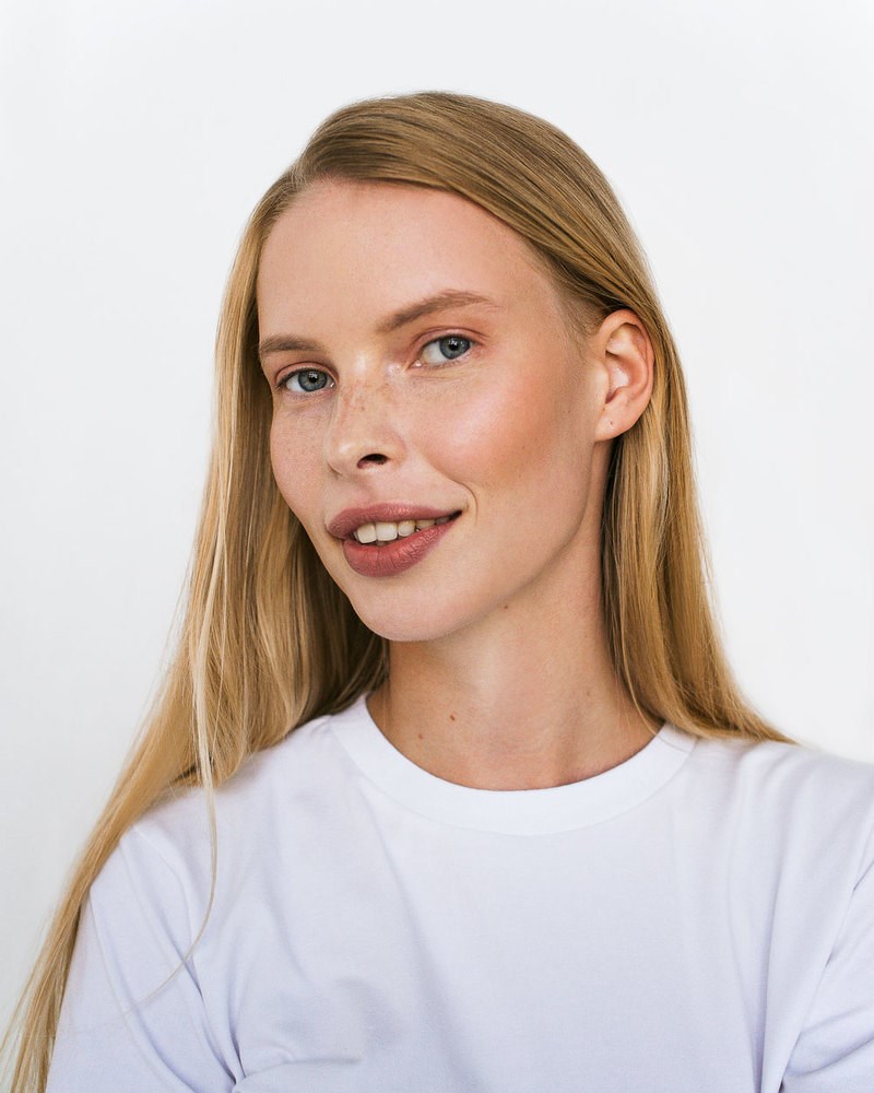 При тонком нанесении на все лицо получается эффект легкого загара.