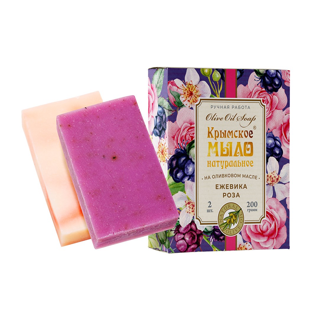 Два кусочка натурального крымского мыла на оливковом масле ручной работы — "Ежевика" и "Роза". Сварено с любовью и заботой.