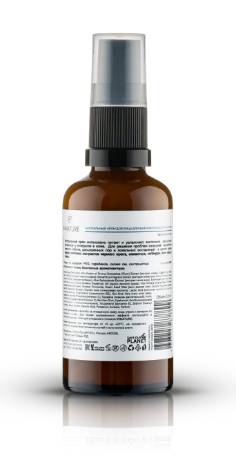Комплекс экстрактов сливы, черного ореха, османтуса, тайберри, алоэ-вера решает проблемы излишней выработки кожного сала, расширенных пор и локальных воспалений.