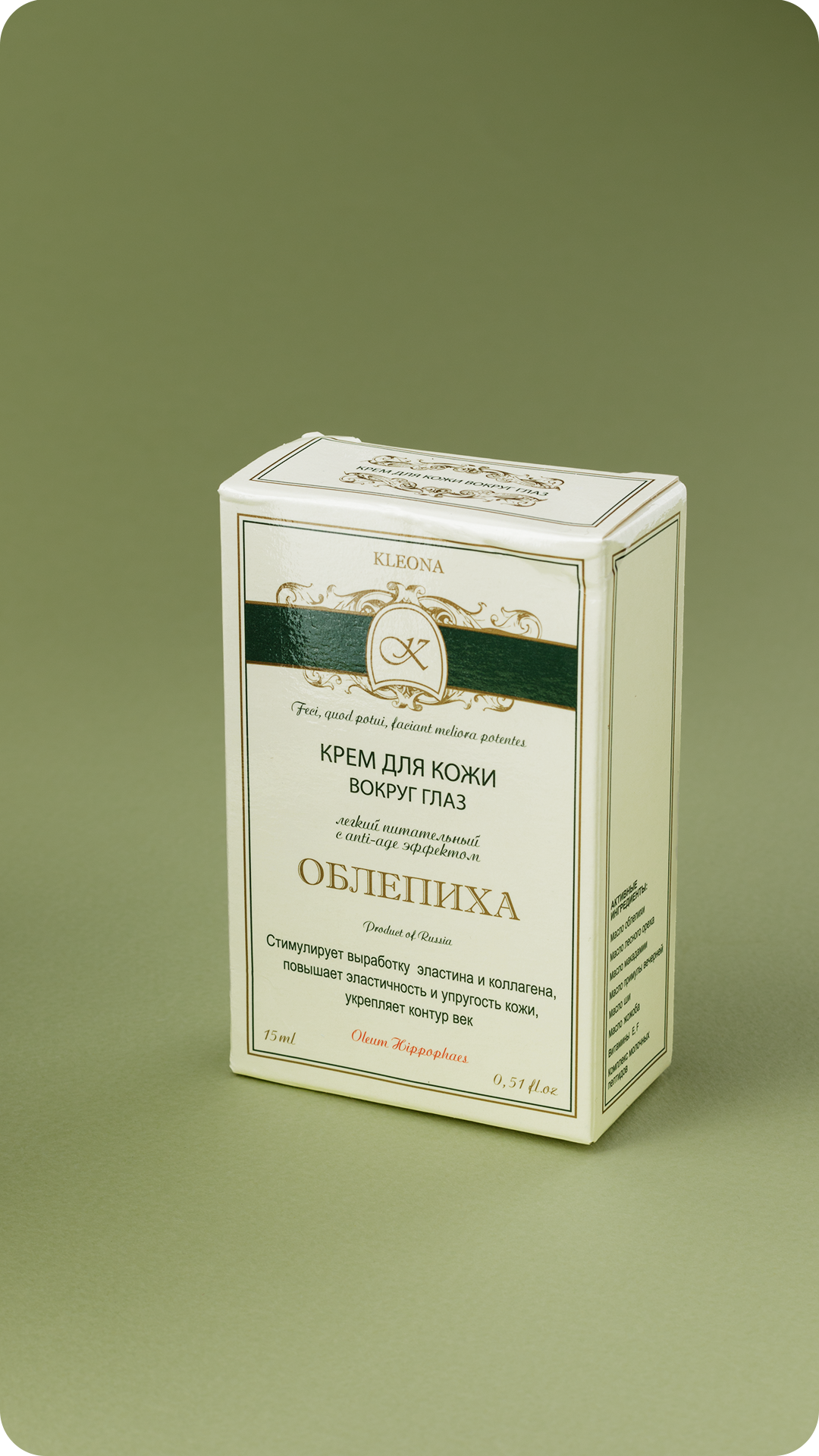 Легкий питательный крем для кожи вокруг глаз «Облепиха». Хорошо увлажняет, освежает кожу, снимает признаки усталости, создает ощущение комфорта. Разглаживает мелкие морщины, вызванные сухостью кожи, восстанавливает упругость кожи, укрепляет контур век. Стимулирует синтез коллагена и эластина. Позволяет поддерживать кожу красивой и ухоженной в любом возрасте.