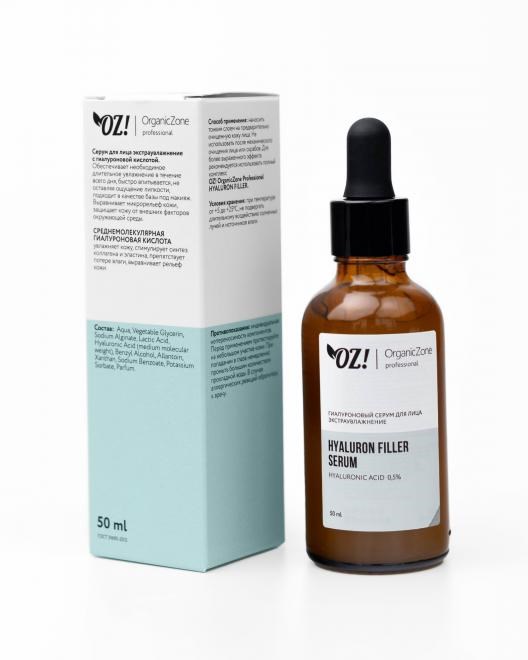 СПОСОБ ПРИМЕНЕНИЯ: наносить тонким слоем на предварительно очищенную кожу лица. Не использовать после механического очищения лица или скрабов. Для более выраженного эффекта рекомендуется использовать полный комплекс OZ! OrganicZone Professional HYALURON FILLER.