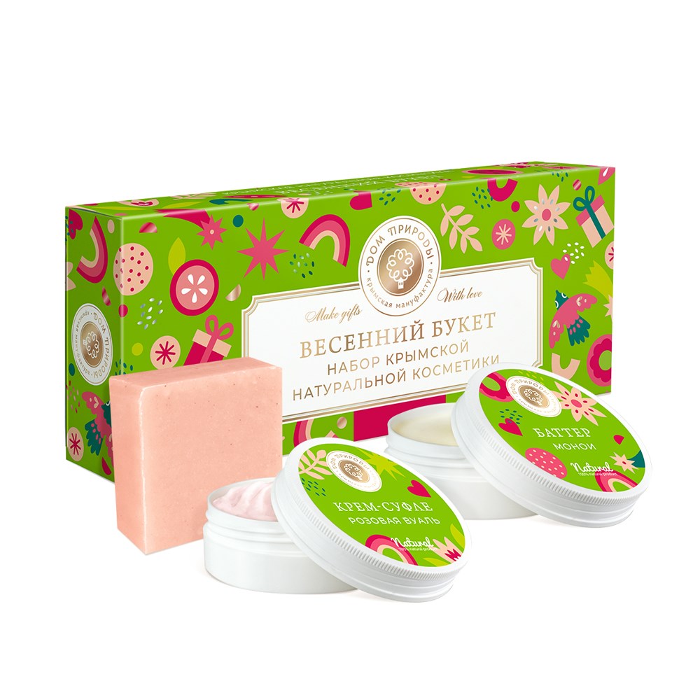 Не нужно искать повода, чтобы порадовать близкого человека. Только представьте аромат баттера монои и нежную пену натурального мыла с экстрактом розы. А какую мягкость и бархатистость подарит коже крем-суфле “Розовая вуаль”! “Весенний букет” от ТМ “Мануфактура ДОМ ПРИРОДЫ” скажет всё за вас.