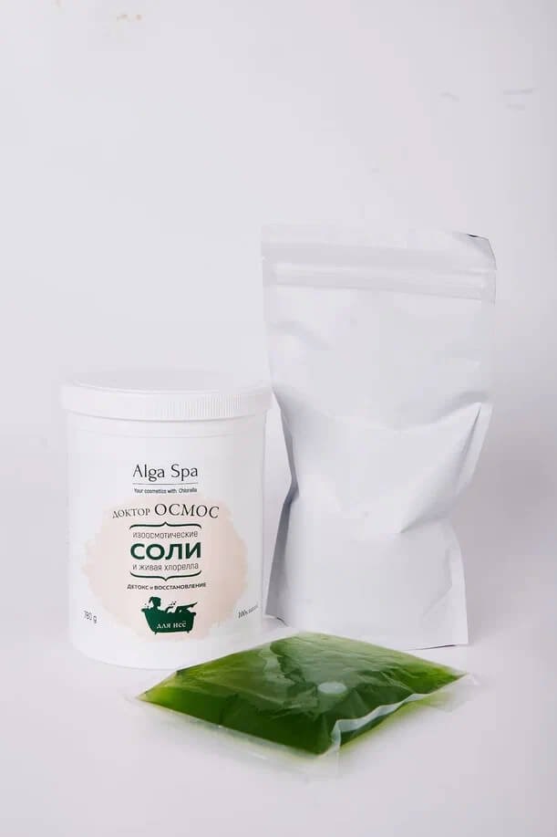 СПОСОБ ПРИМЕНЕНИЯ: В процессе заполнения ванны водой (120 л, температура 36-38 °С) растворить одну упаковку солевого концентрата и добавить хлореллу из пакета.