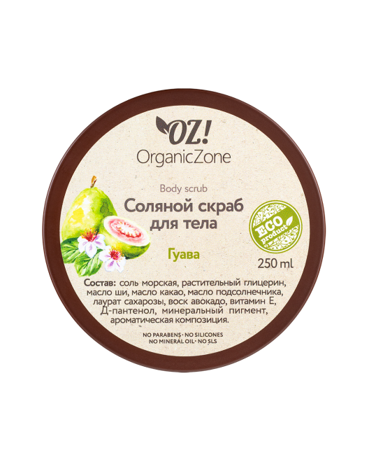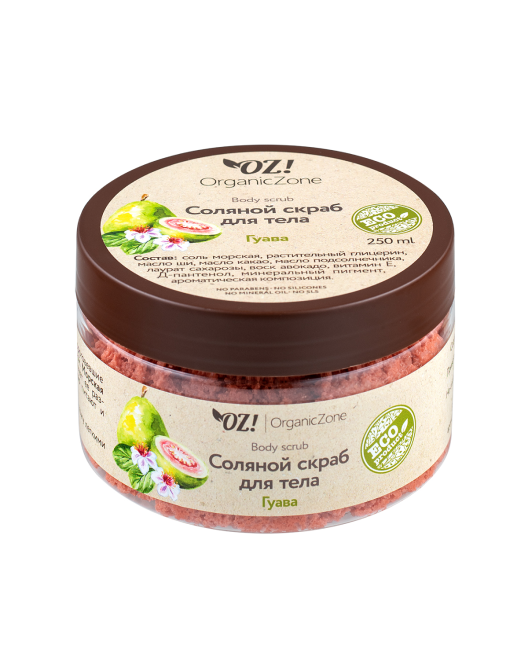 Скраб для тела «Гуава» бережно отшелушивает ороговевшие клетки кожи, делая ее гладкой и бархатистой. Морская соль улучшает микроциркуляцию, натуральные масла ши и какао питают кожу и придают ей здоровый вид.