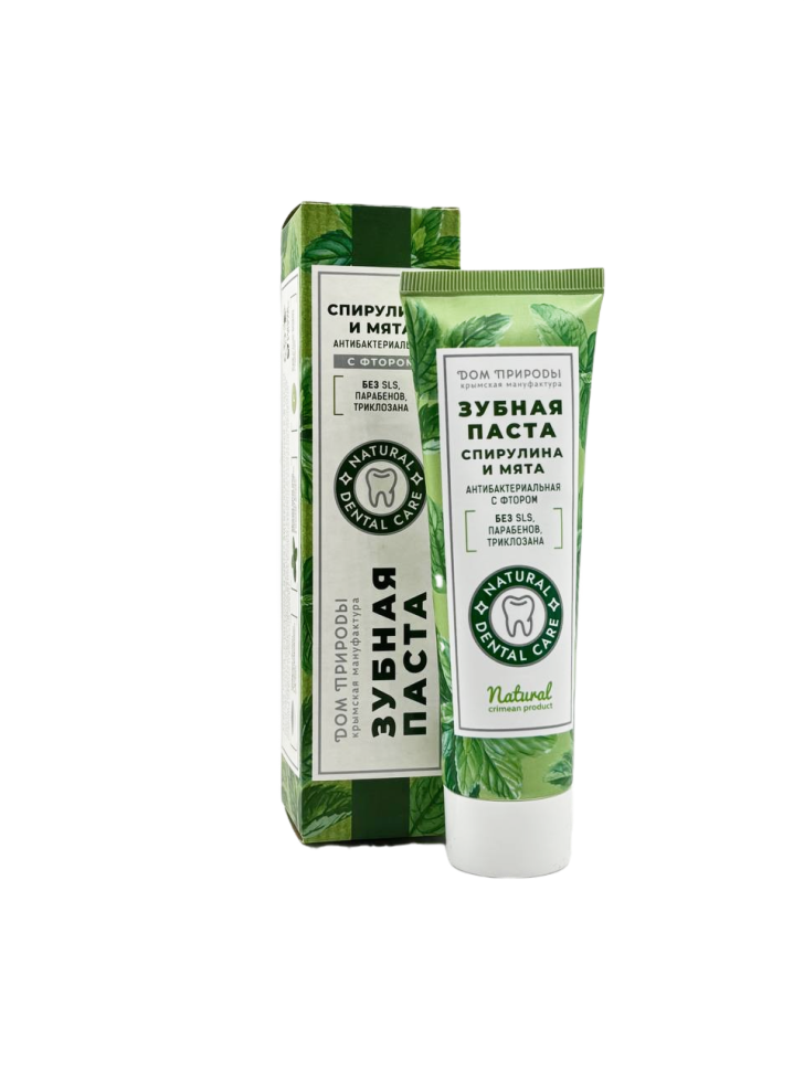 Зубная паста натуральная Со фтором антибактериальная Спирулина и мята, 70г